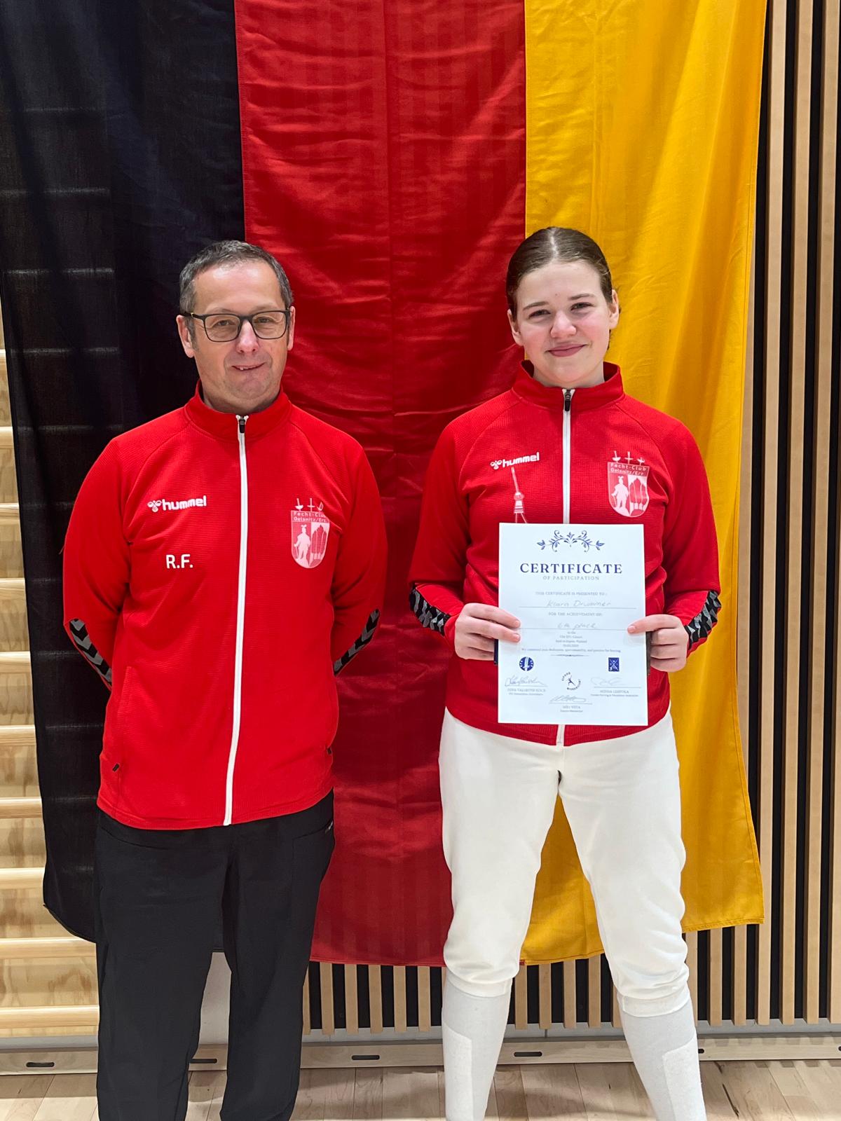 Sie belegte 2024 den 1. Platz in der Deutschen Meisterschaft in der U13 Klasse (Damendegen), ebenso erkämpfte sie sich den Titel Mitteldeutsche Meisterin und Landesmeisterin in der U13. Im EuropaCup in Finnland erkämpfte sie sich den 6. Platz.